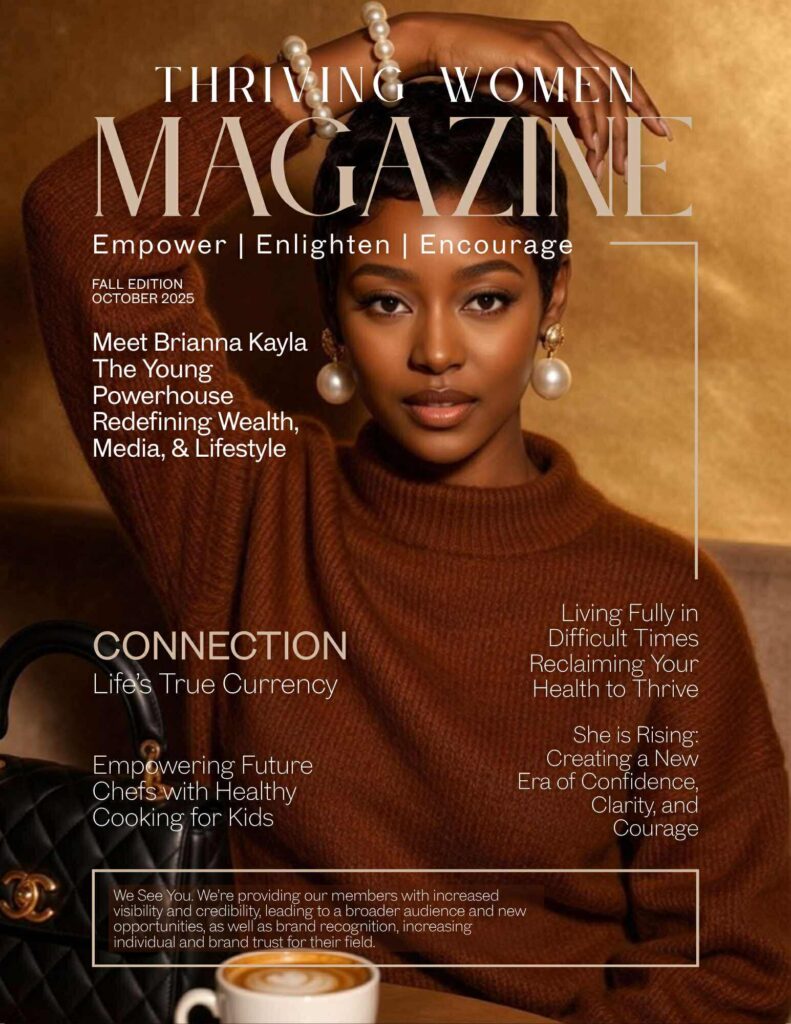 Thriving Women Magazine tagline is: We See You. Our magazine provides our members with benefits such as increased visibility and credibility, which can lead to a wider audience reach and new opportunities, as well as brand recognition, making the individual or brand seem more trustworthy and established in their field.